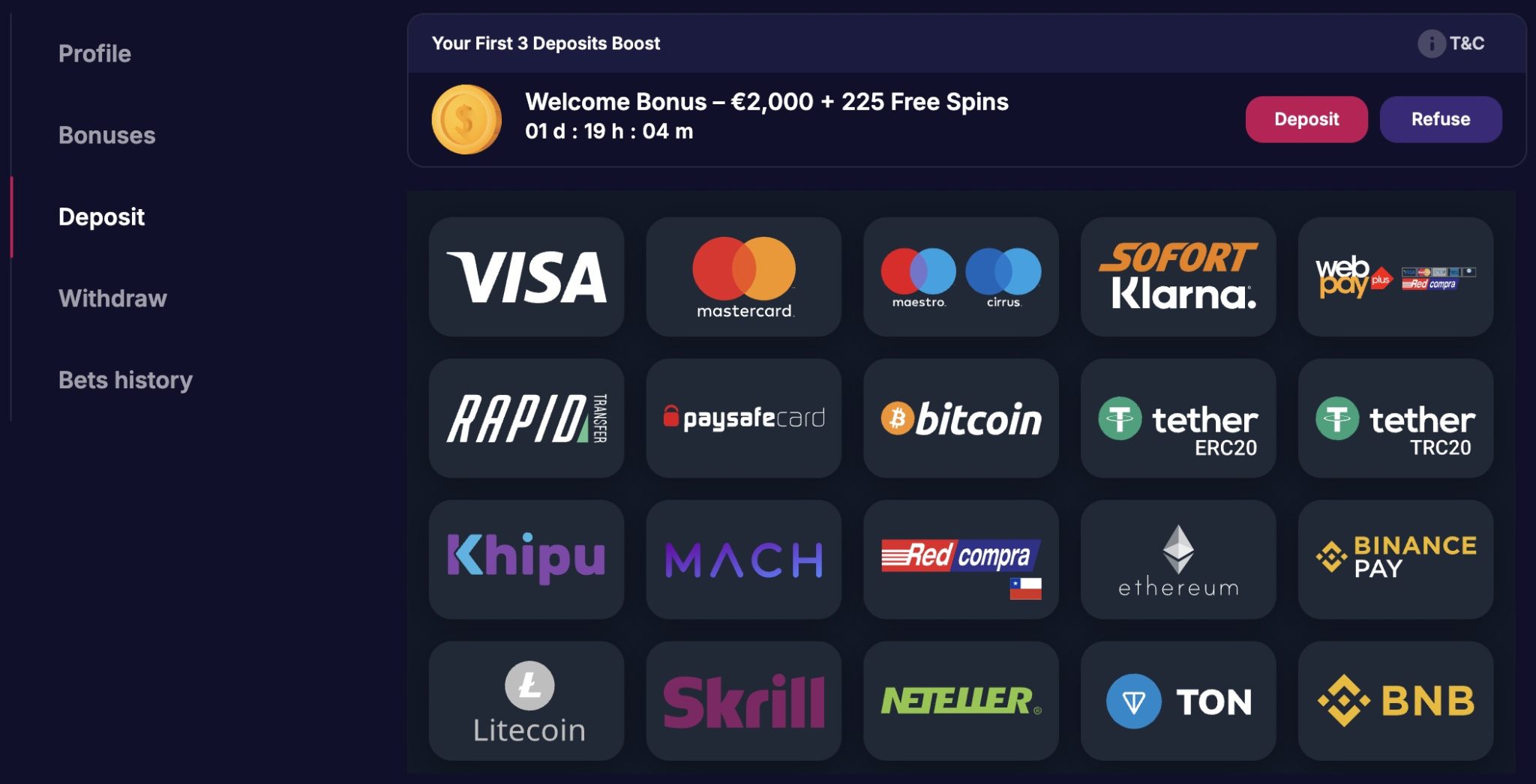 Restrictions de retrait : Pour retirer leurs gains sans restriction, les joueurs doivent miser au moins deux fois (2x) le montant de leur dépôt. Le non-respect de cette consigne entraîne une commission de 20 % sur le montant du retrait, ce qui peut représenter une dépense importante.